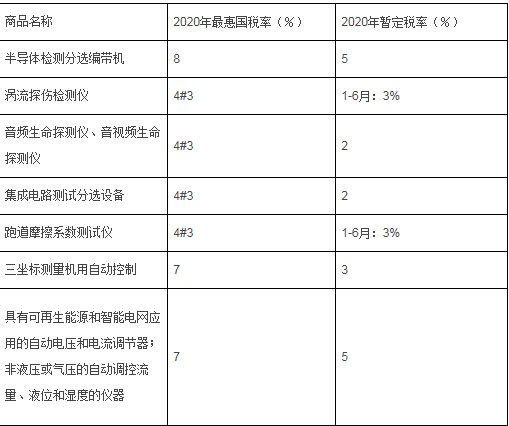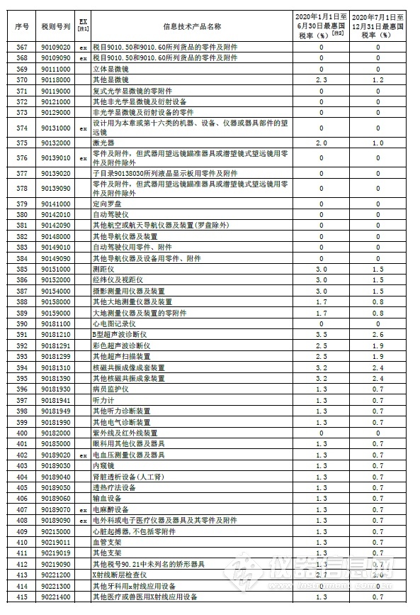 部分信息技術(shù)產(chǎn)品最惠國(guó)稅率表中的儀器